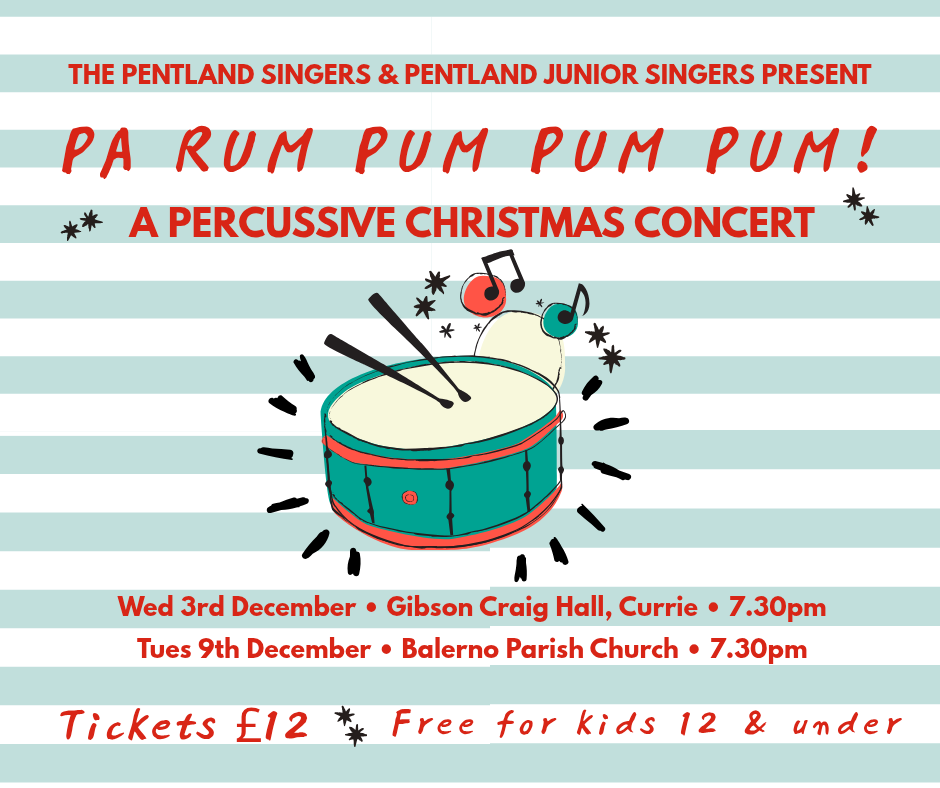 We are excited to present Pentland Singers and Pentland Junior Singers Christmas Concerts “A Percussive Christmas”! Joins us at one (or both) of our concerts: